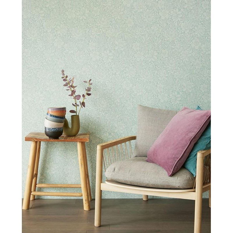 Papel pintado flores grandes verde menta