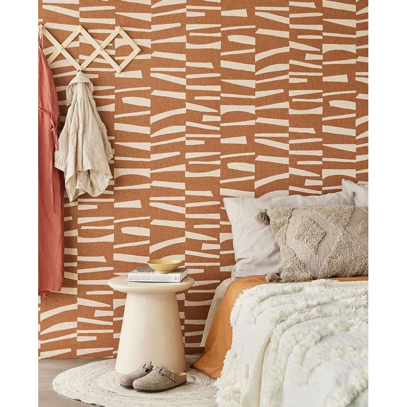 Papel Pintado étnico rayas verde pastel. Dale vida a tus paredes en cualquier estancia de tu hogar. Combina con estilos modernos y clásicos.