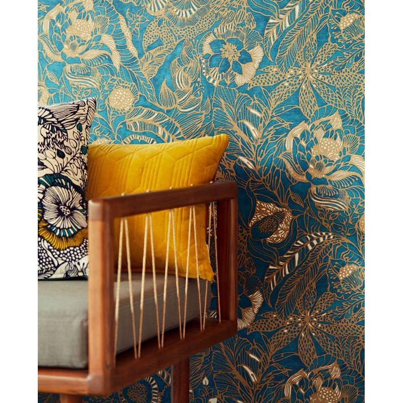 Papel pintado lino efecto textil amarillo mostaza que ofrece energía y calidez. Medidas del rollo: 1 x 10 metros