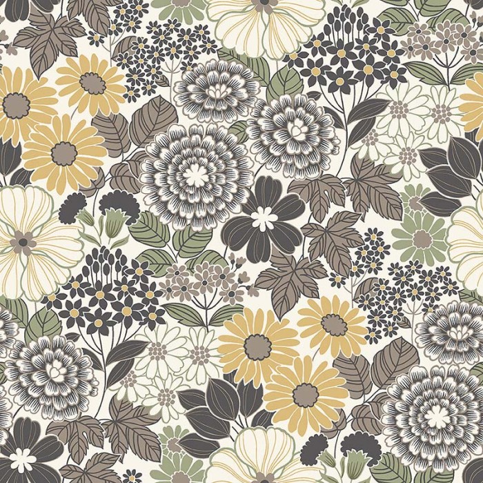 Papel pintado, una paleta icónica de la década de 1970 de verde apagado, marrón y amarillo, nuestro papel pintado Anita es un tributo a la diversión y el juego retro. Con un patrón de flores florecientes simplemente ilustradas, pero maravillosas, en un mar de hojas deliciosas, no puedes evitar sonreír al verlo. De carácter tranquilo y suave, combina a la perfección con tantos estilos diferentes. Cuélgalo en tu dormitorio, cocina o pasillo para una estética llena de alegría y expresión.