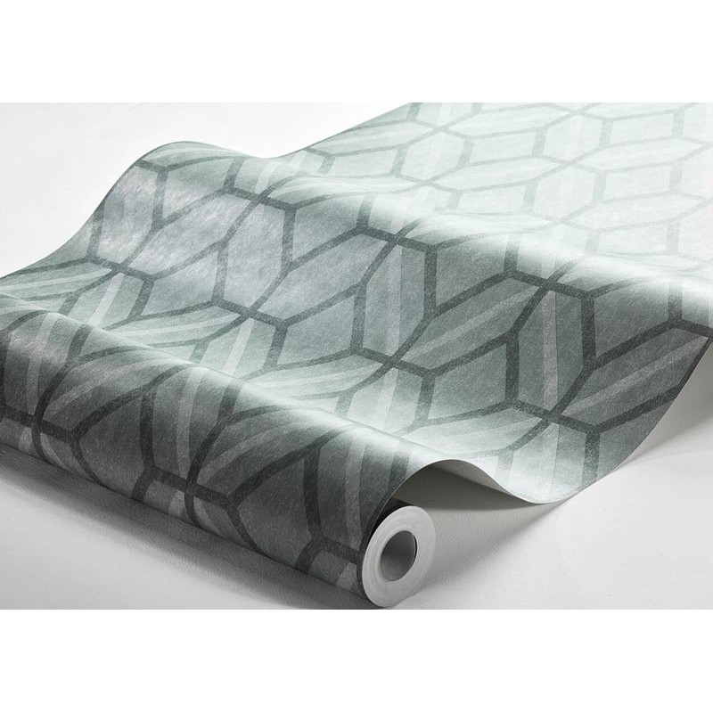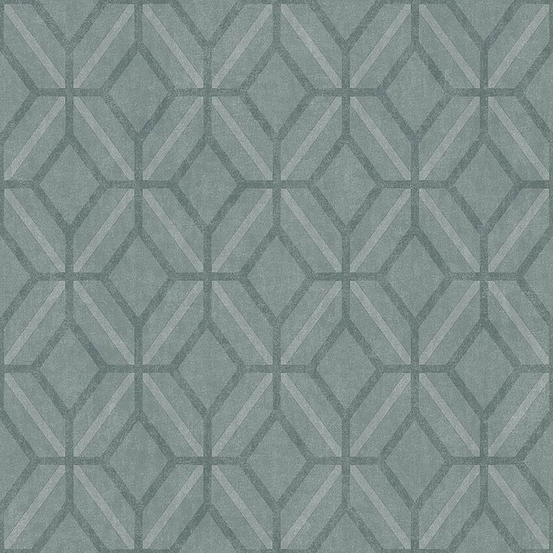 Papel pintado verde oscuro apagado relajante con patrones de enrejado de octágono y diamantes geométricos superpuestos, el tono sobre tono con su superficie de efecto texturizado agrega profundidad elegante e interés a las paredes. Indicado para salón, recibidor o dormitorio para una estética clásica y contemporánea.