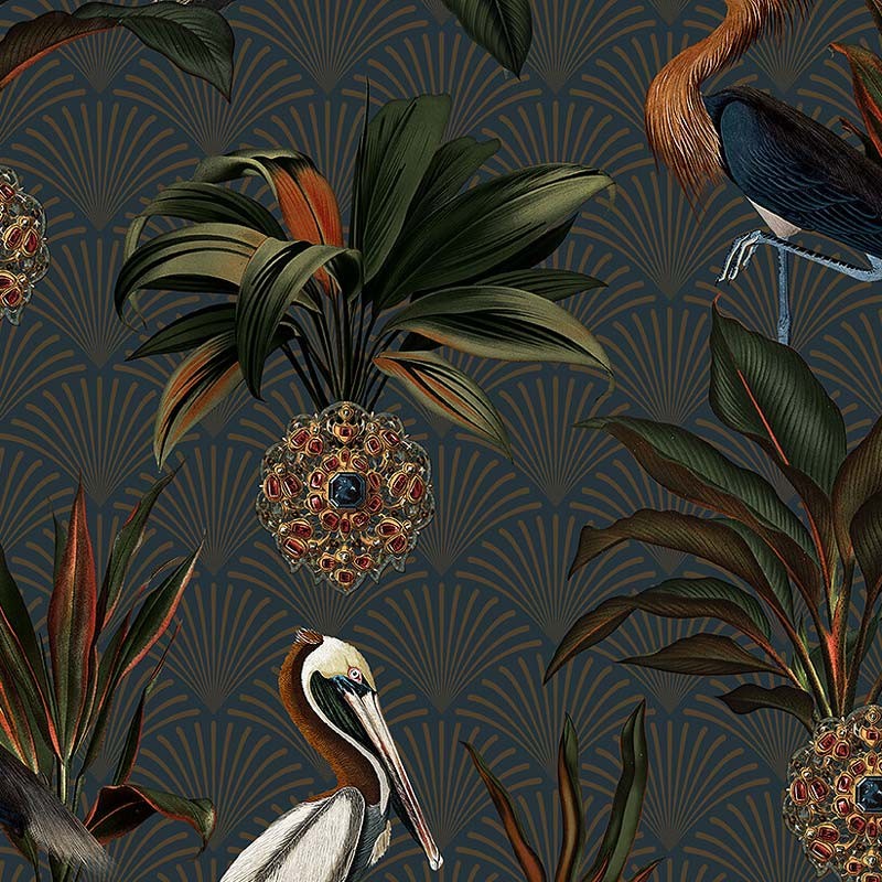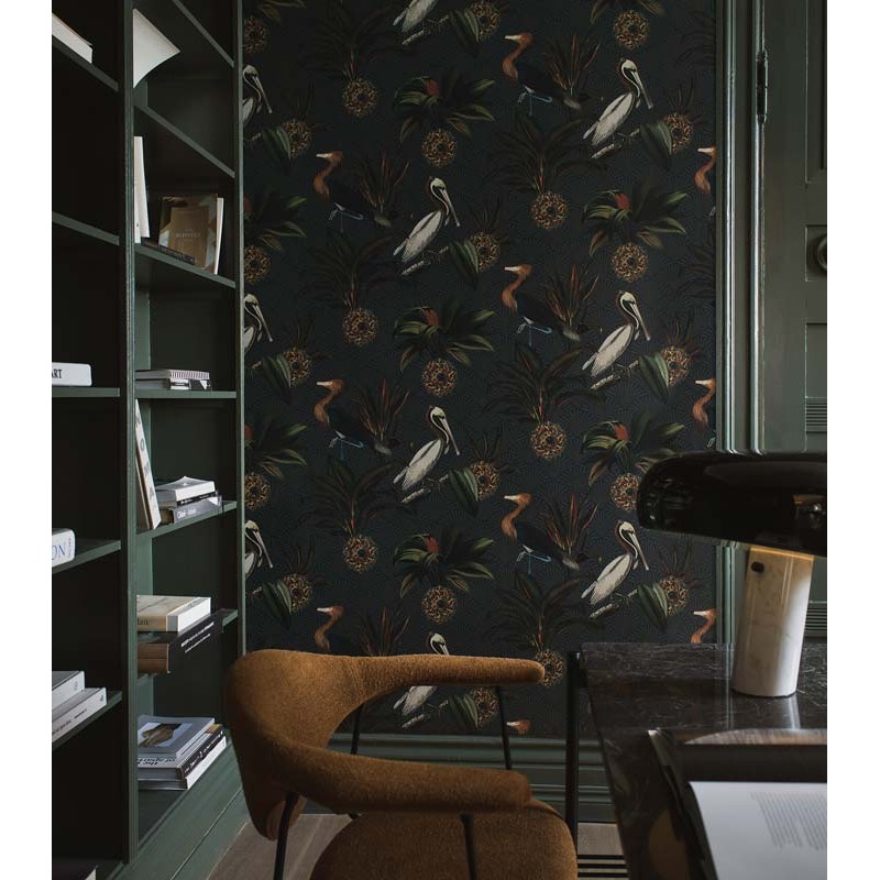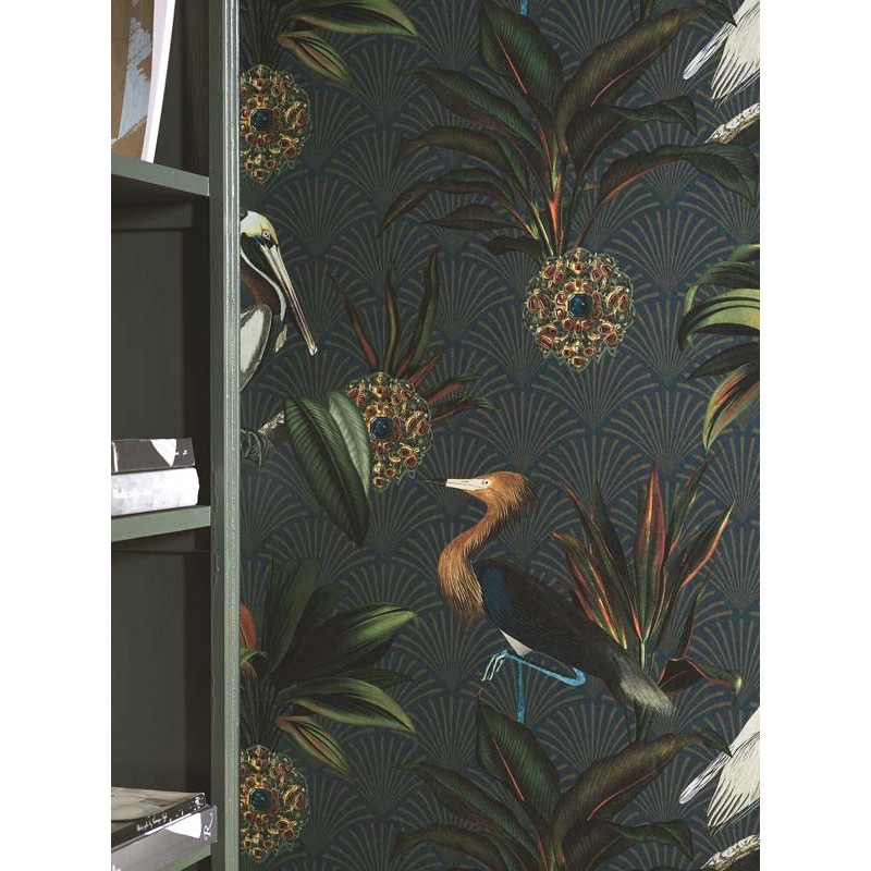 Papel pintado tonos vívos y elegantes de azul, marrón, verde y ocre dorado con efecto de luz y brillo, Sapphire Birds es peculiar pero elegante. Con un patrón realmente encantador de gráciles pájaros que se destacan entre lujosos zafiros y exuberante follaje sobre un fondo estampado clásico, crea una expresión radiante para las paredes. Indicado para salón, dormitorio o comedor para un estilo único y expresivo.