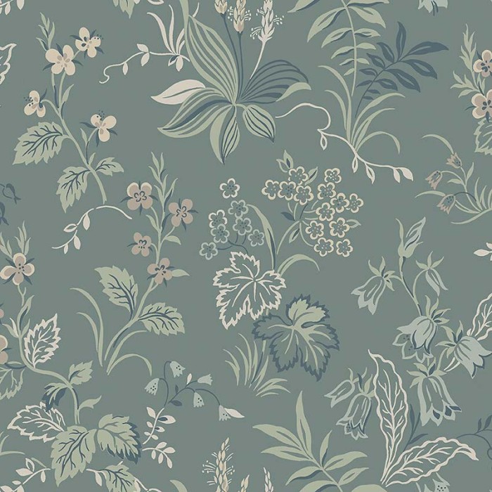 Papel pintado flores campana y nomeolvides estilo escandinavo genuino