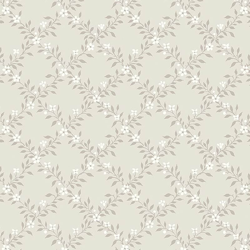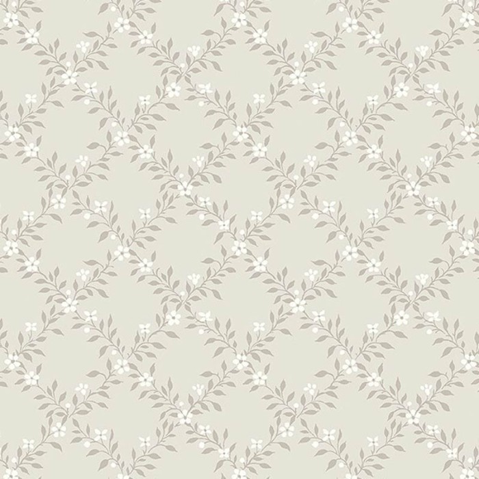 Papel pintado de marrón grisáceo y blanco crema sobre un fondo de porcelana blanca suave, Sommarslöja está lleno de expresión romántica y rural. Con un patrón de enrejado tranquilo entrelazado con hojas delicadas y flores delicadas, su diseño original fue pintado a mano en la década de 1950. Indicado para dormitorio, salón o comedor para un estilo contemporáneo en contacto con el pasado.