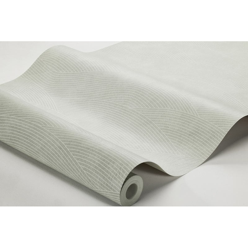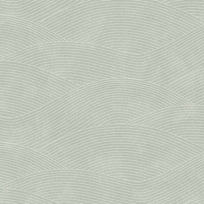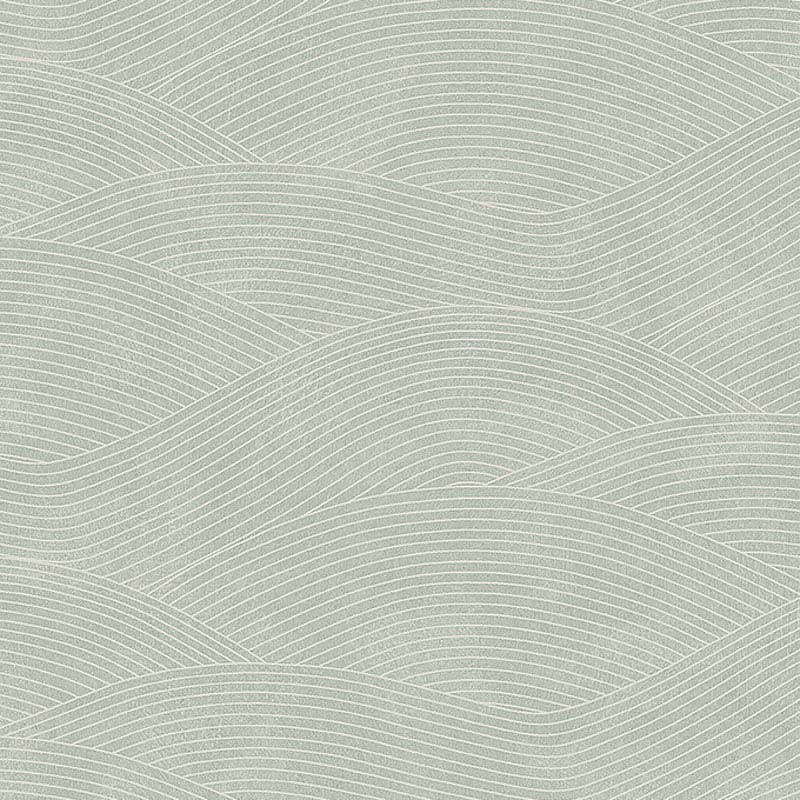 Papel pintado en tonos verde salvia claro, Haväng inspirado en el impresionante paisaje abierto de la Escandinavia rural. El movimiento y la fluidez ocupan un lugar central en este enfoque curvilíneo del diseño geométrico. Creará un oasis de paz y tiempo para reflexionar. Indicado para salón, cocina o dormitorio para crear un espacio lleno de calma y expresión natural.