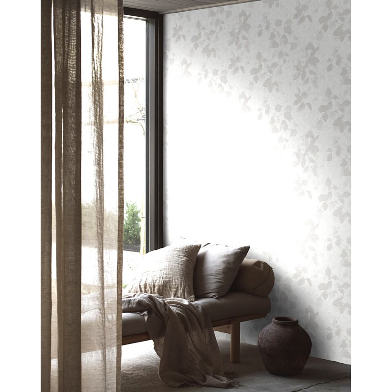 Papel pintado hojas ramas estilo escandinavo en gris claro