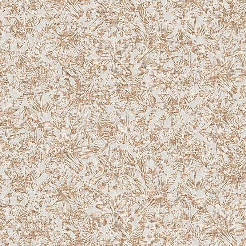Papel pintado floral grande efecto textil escandinavo en marrón y beige