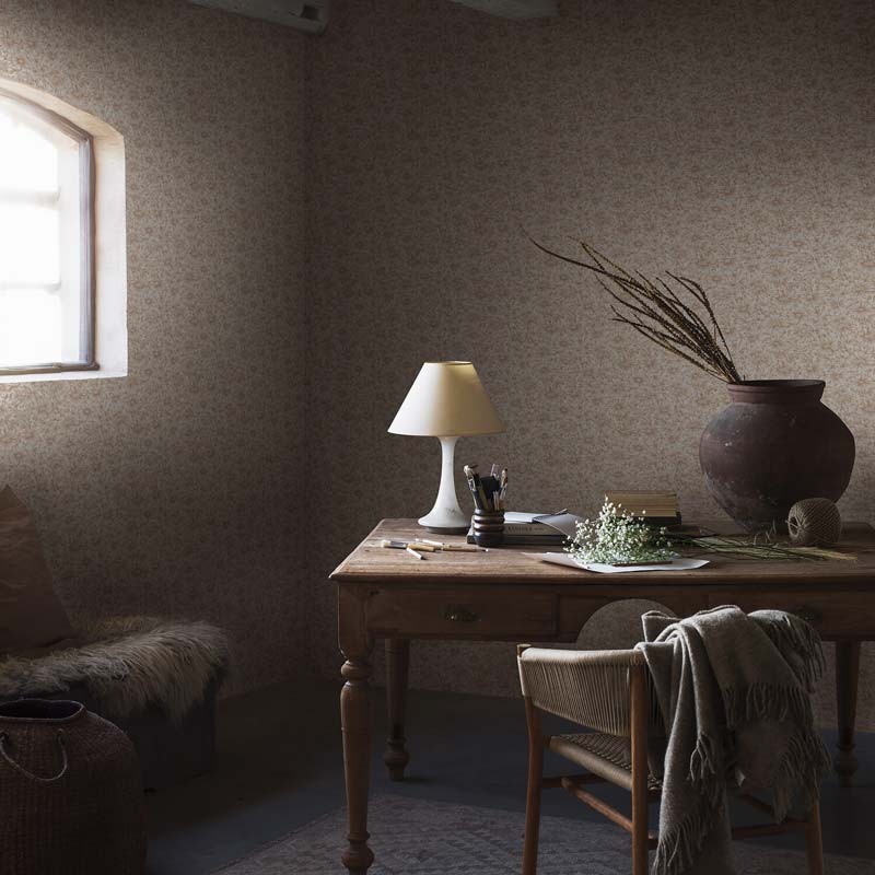 Papel pintado con un tono marrón oxidado apagado sobre un fondo beige lino, Gabriella con una superficie de efecto textil está lleno de encanto escandinavo con un toque moderno. Con un patrón de flores y follaje grande pero sutil, agrega una sensación enérgica a yinterior. Indicado para salón, comedor o dormitorio para una estética única y armoniosa.