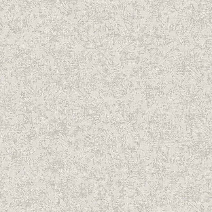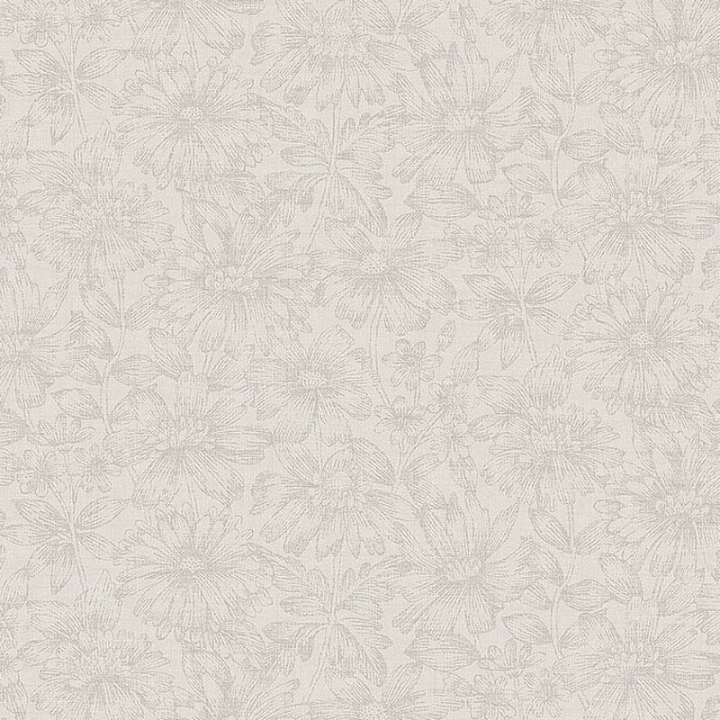 Papel pintado floral grande efecto textil escandinavo en gris cálido