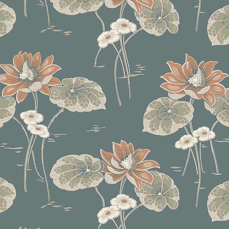 Papel pintado nenúfares Art Nouveau estilo escandinavo en gris y blanco