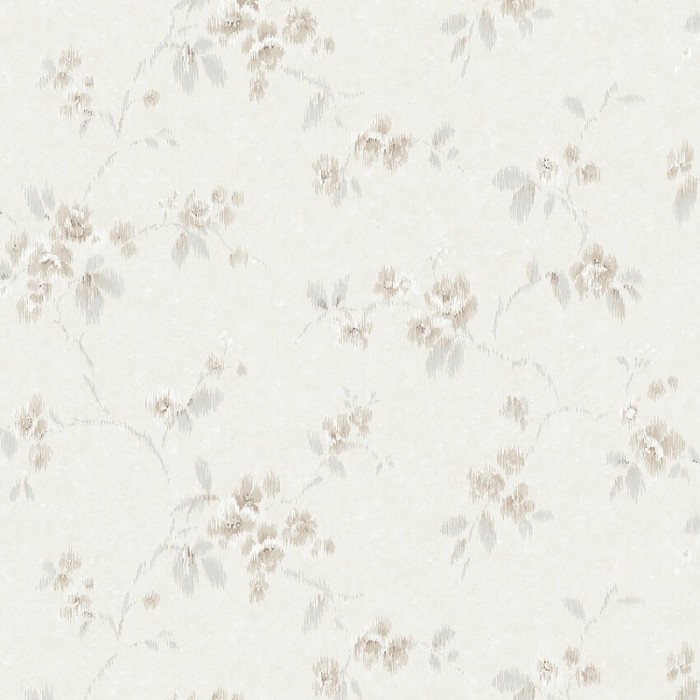 Papel pintado floral estilo vintage en beige gris y blanco