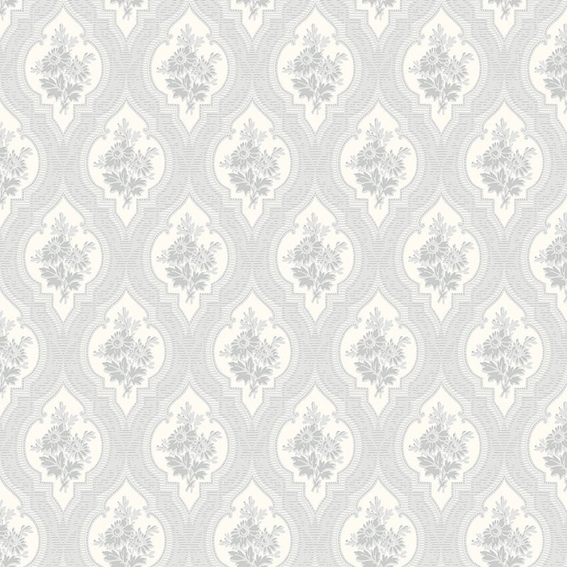 Papel pintado floral medallón estilo francés elegante en gris y blanco