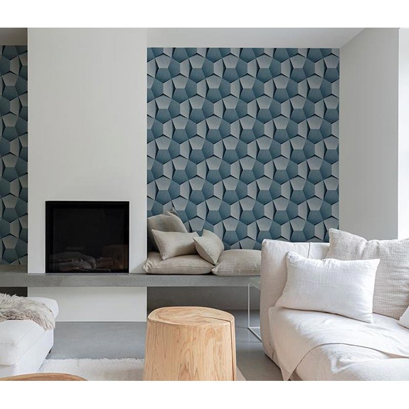 Papel pintado 3D moderno azul. Transforma tu hogar con estilo perfecto para el comedor. Combina perfectamente con estilos modernos y clásicos.