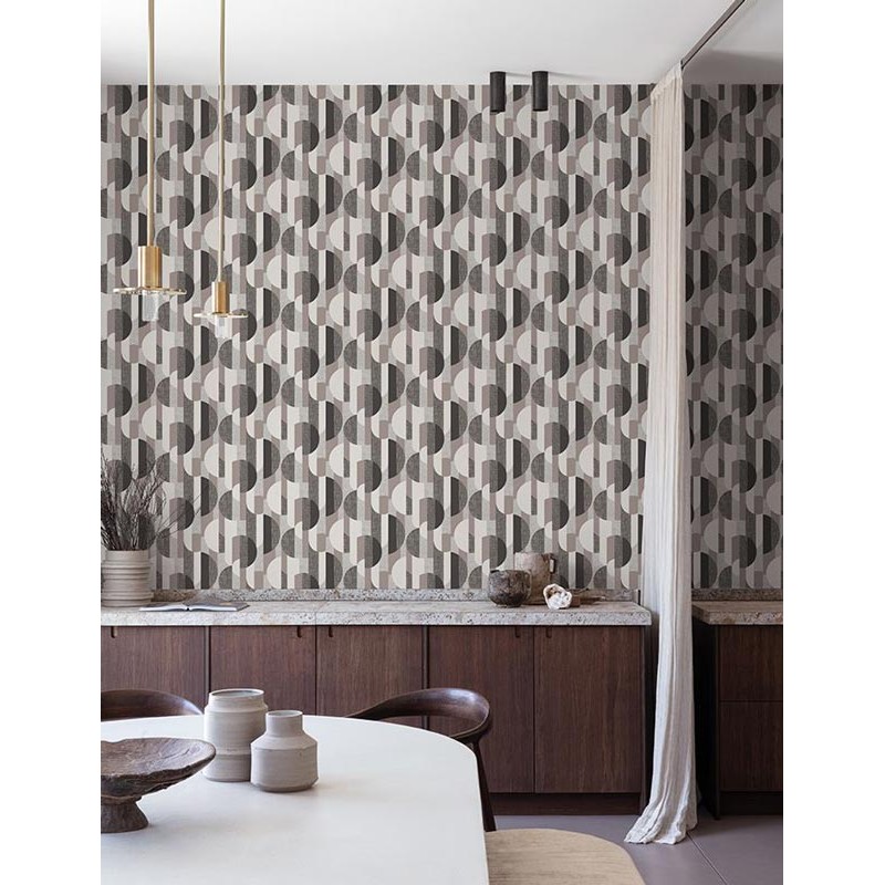 Papel pintado moderno geométrico gris marrón. Dale vida a tus paredes en tu dormitorio. Ideal para quienes buscan calidez y estilo.