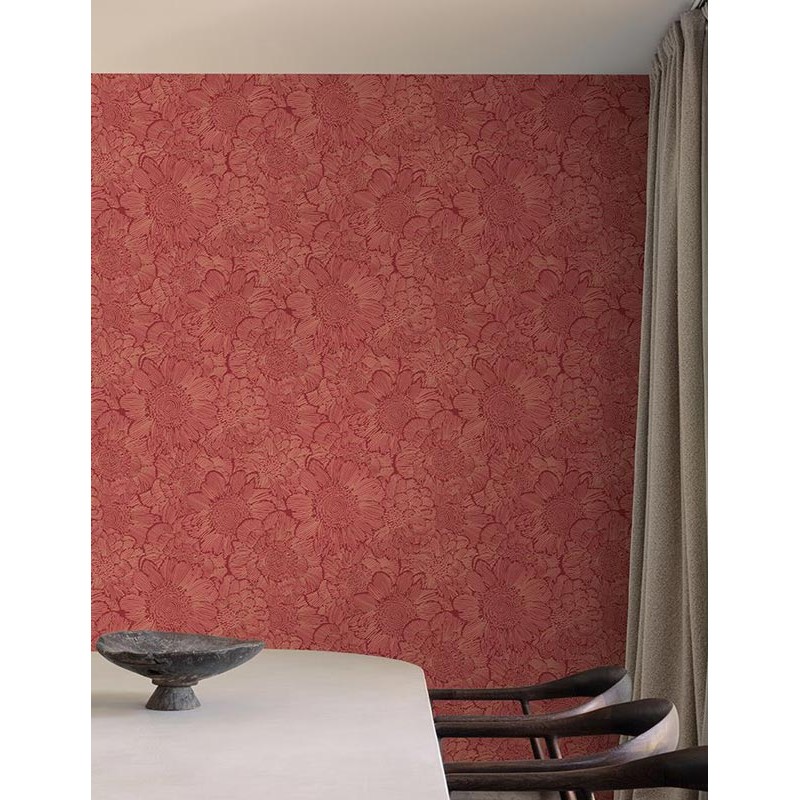 Papel pintado flores 3D tonos rojo. Decora con encanto para habitaciones con estilo. Un papel pintado con personalidad propia.