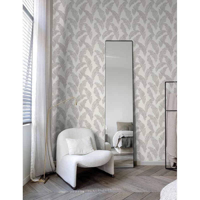 Papel pintado minimalista hojas grandes verde. Decora con encanto en tu oficina en casa. Un diseño que transforma cualquier ambiente.