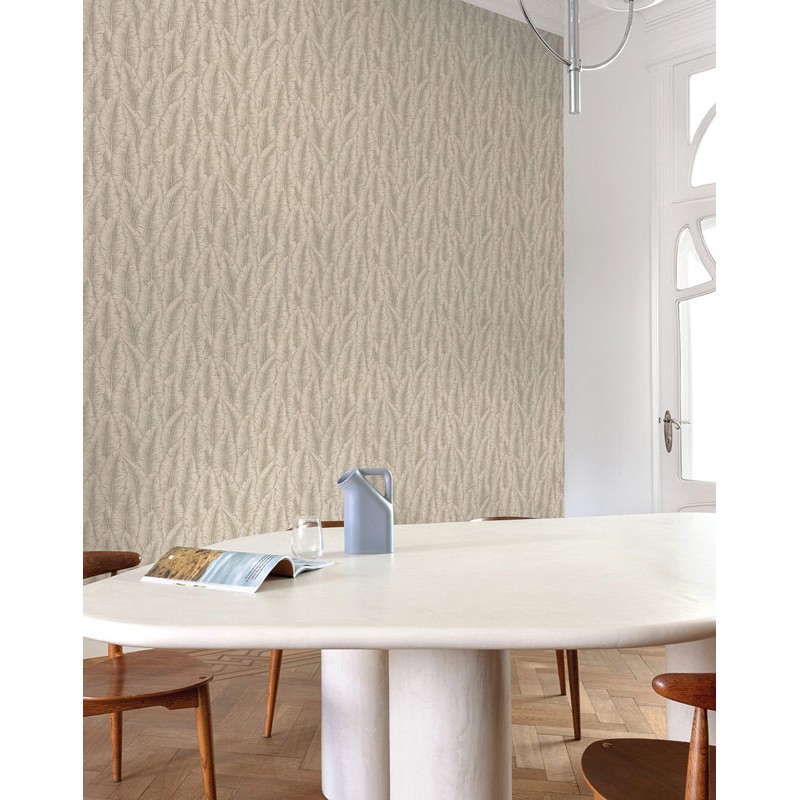 Papel pintado hojas tropicales cumarú blanco crema. Renueva tus espacios para habitaciones con estilo. Haz de tus paredes el centro de atención.
