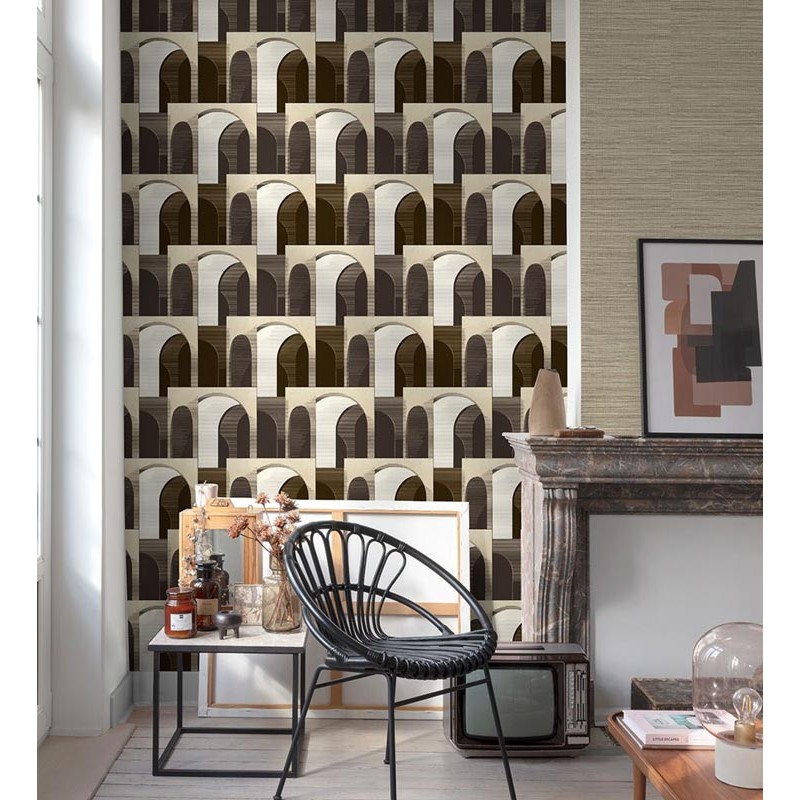 Papel pintado figurativo estilo de bauhaus beige negro. Hazlo destacar con diseño en tu oficina en casa. Un diseño que transforma cualquier ambiente.