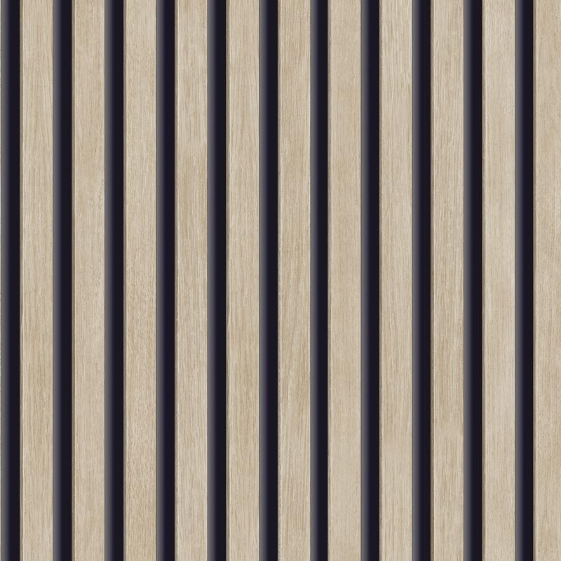 Papel pintado listones madera 3D beige. Decora con encanto ideal para el recibidor. Combina perfectamente con estilos modernos y clásicos.