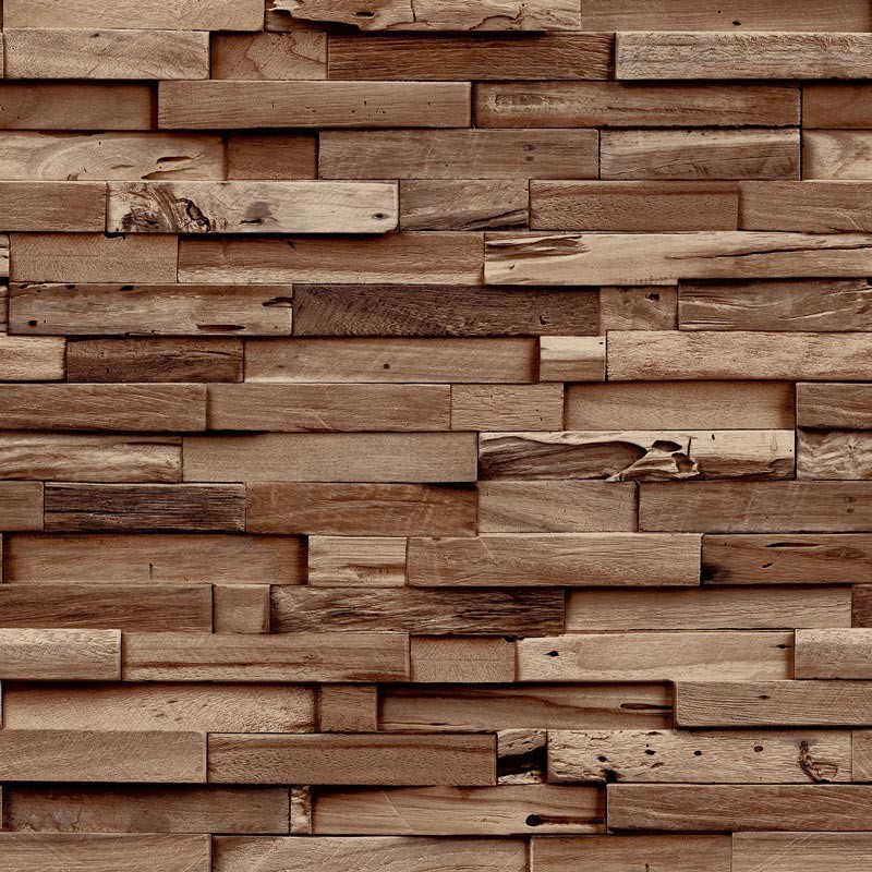 Papel pintado efecto madera 3D marrón oscuro. Crea un ambiente acogedor ideal para tu rincón de lectura. Un diseño que transforma cualquier ambiente.