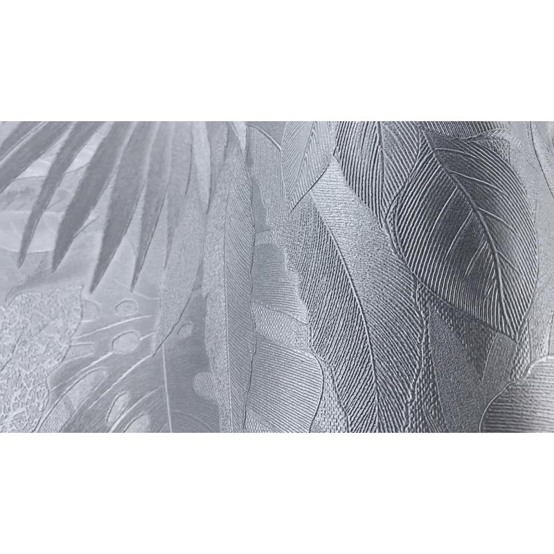 Papel pintado hojas monstera palmeras color plata