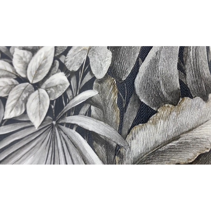 Papel pintado hojas grandes tropical gris azulado, perfecto para proyectos de interiorismo. Marburg Botanica 33306.
