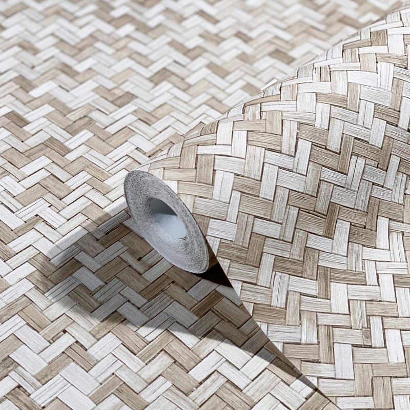 Ideal para ambientes sofisticados y actuales, papel pintado mimbre artesanal de bambú greige Marburg Botanica 33311.