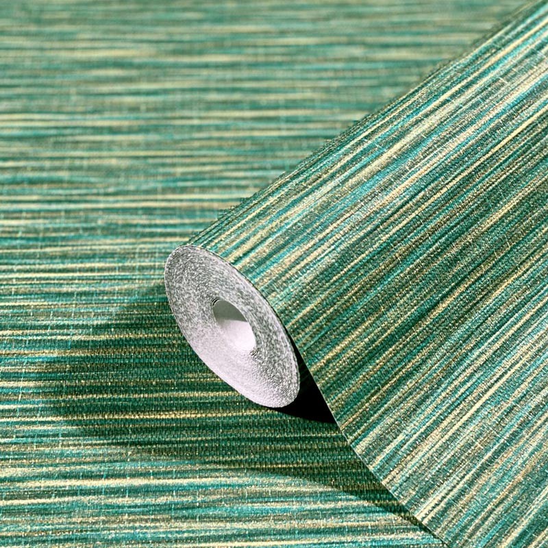 Papel pintado efecto fibra rafia turquesa, con un efecto visual llamativo. Marburg Botanica 33321.