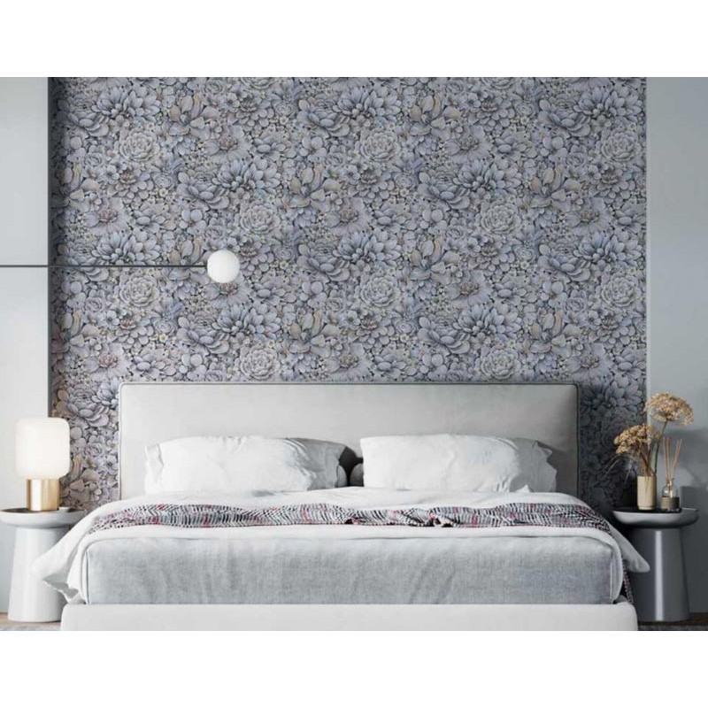 Papel pintado floral romántico flores lila, con un efecto visual llamativo. Marburg Botanica 33955.