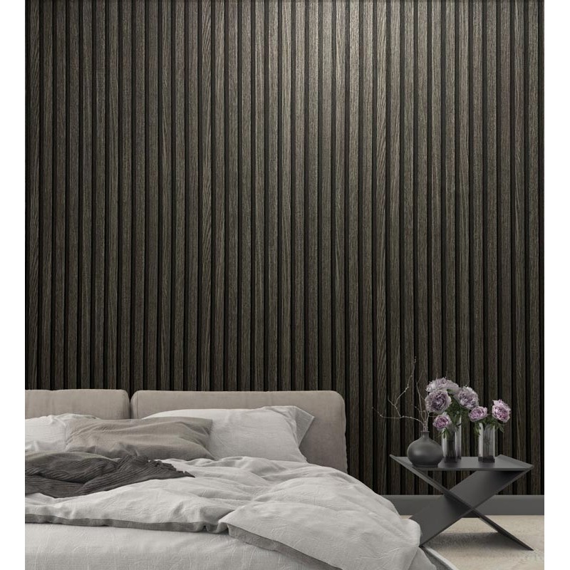 Papel pintado panel listones madera gris, perfecto para proyectos de interiorismo. Marburg Botanica 33959.