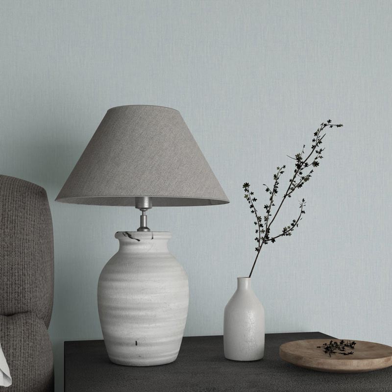 Papel pintado textil efecto lino gris, ideal para destacar tus paredes. Marburg Botanica 33964.