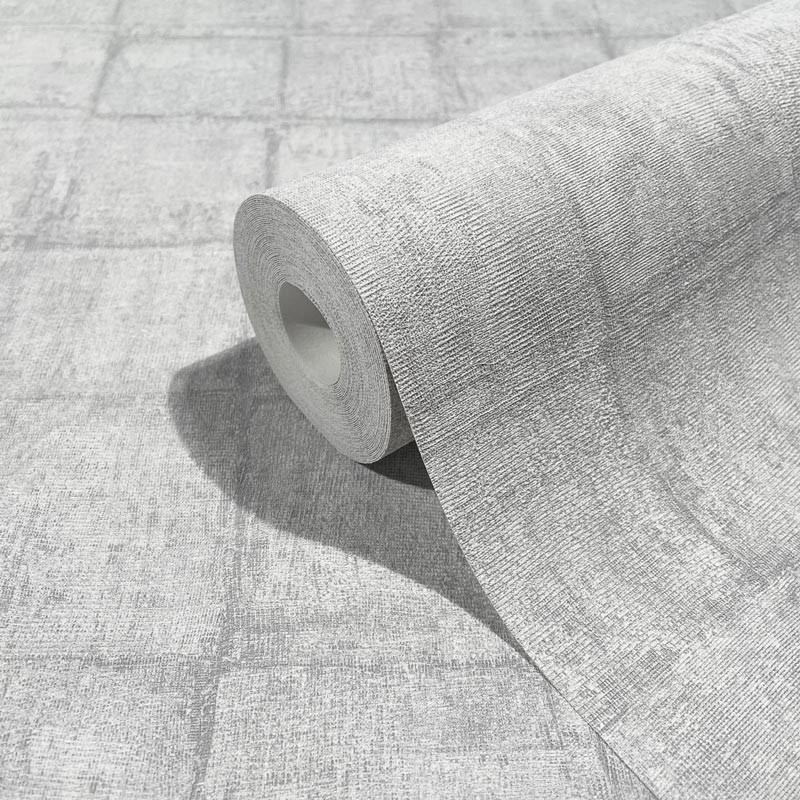Ideal para ambientes sofisticados y actuales, papel pintado baldosas efecto yeso u hormigón gris Marburg Botanica 33969.