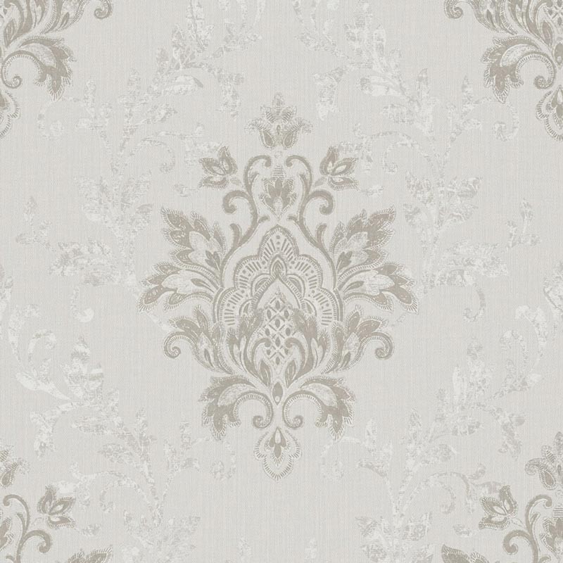Papel pintado ornamental estilo damasco beige de Marburg, colección Villa Romana, calidad tejido no tejido lavable. Medidas: 53 cm x 10 metros