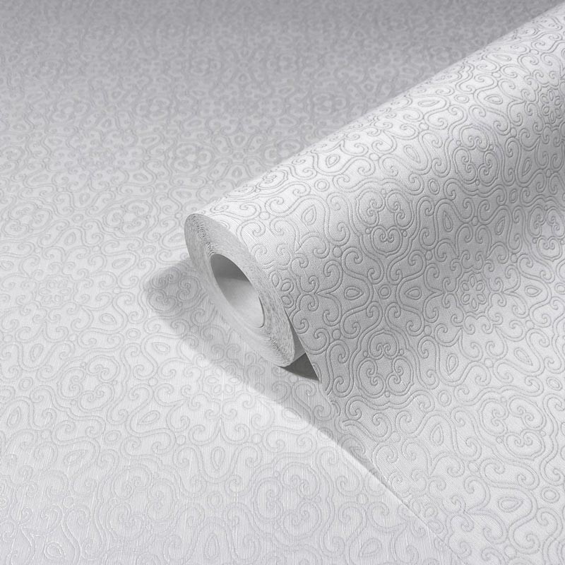 Perfecto para crear atmósferas únicas, papel pintado arabesco filigrana ornamental gris plata Marburg Villa Romana 32969.