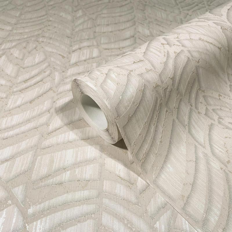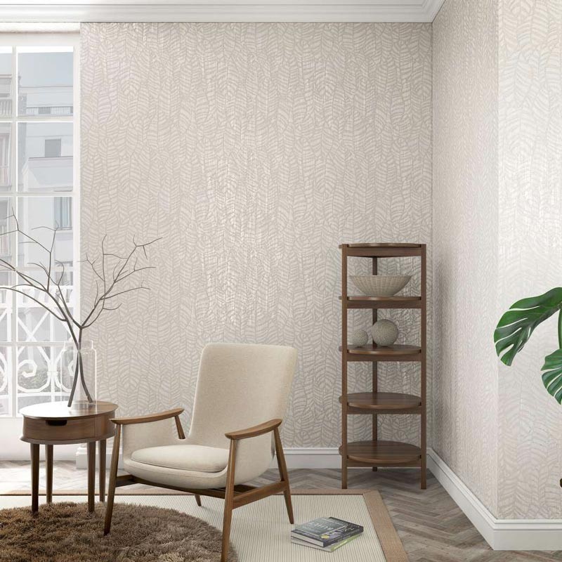 Papel pintado floral abstracto beige con relieves, aporta elegancia y personalidad. Marburg Villa Romana 32973.