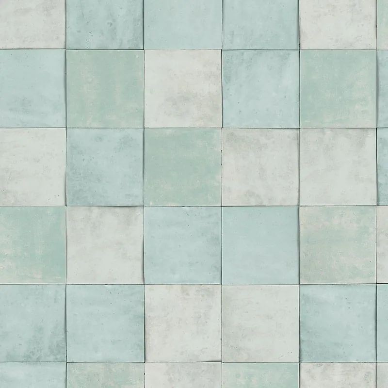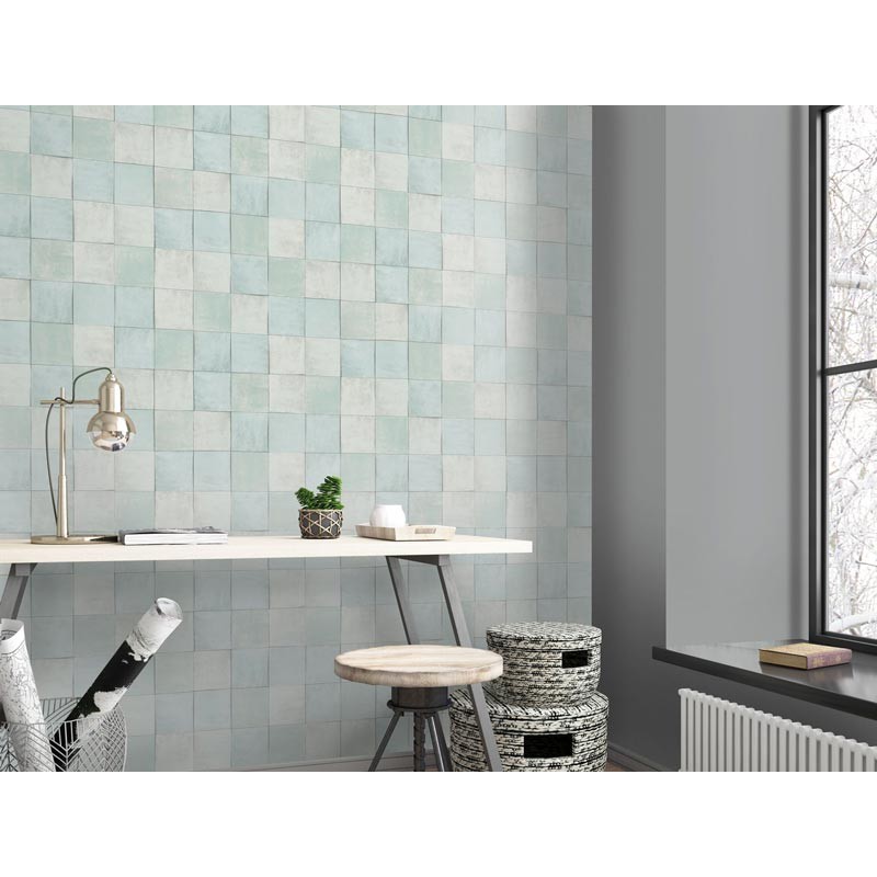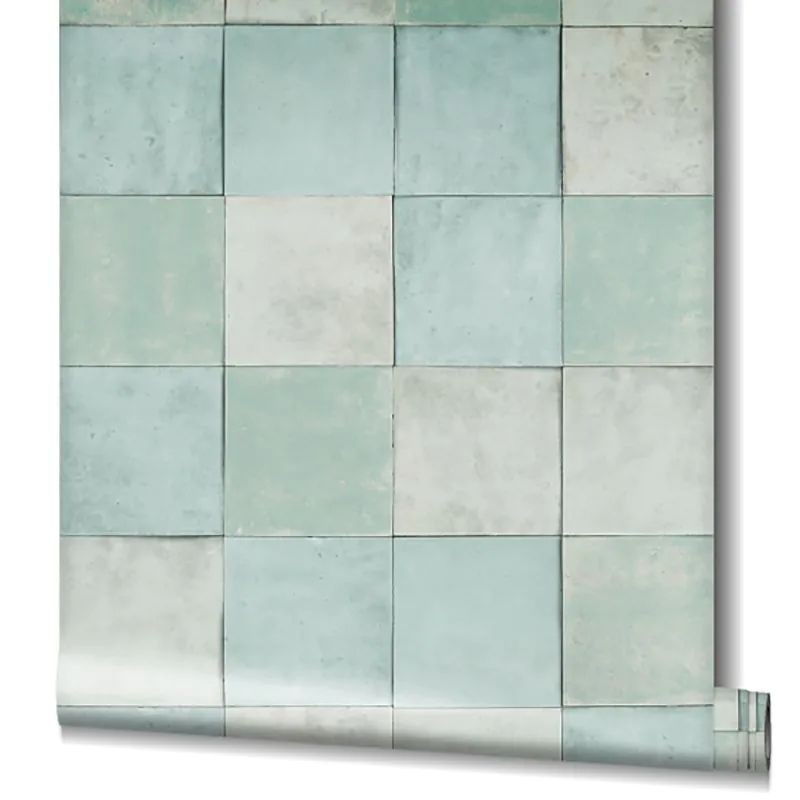 Papel pintado 45717 ZELLIGE de Marburg imitación azulejo, Color: Verde/Gris