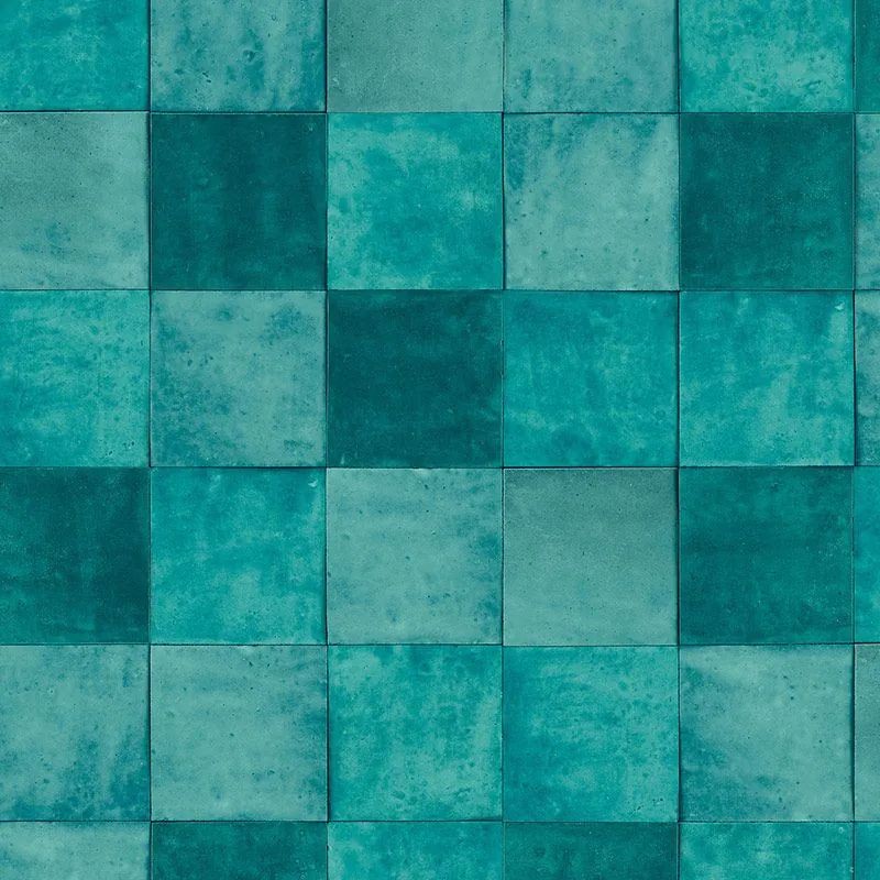 El detalle que marca la diferencia es papel pintado imitación azulejo turquesa Marburg Zellige 45721.