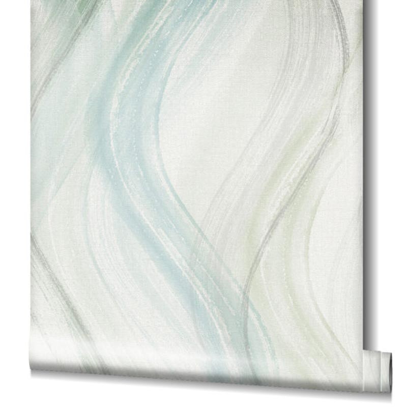 Papel pintado ondas acuarela azul verde de Marburg, colección Shades, calidad tejido no tejido lavable. Medidas: 53 cm x 10 metros