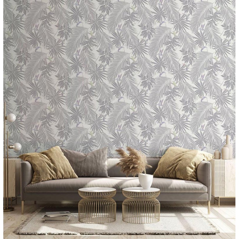 Papel pintado hojas exóticas y colibries verde, con un efecto visual llamativo. Marburg Spirit Of Jungle 47408.