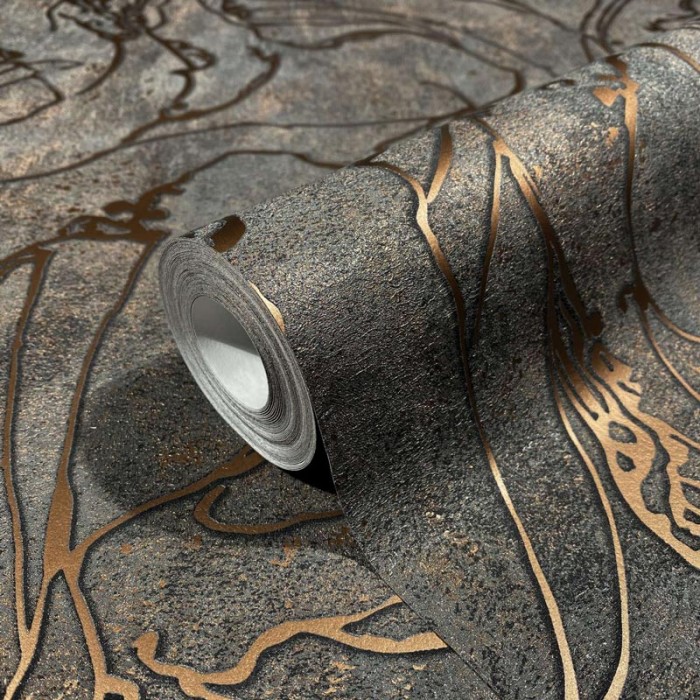 Papel pintado abstracto hormigón óxido y plata, con textura y diseño diferenciador. Marburg City Glow 34255.