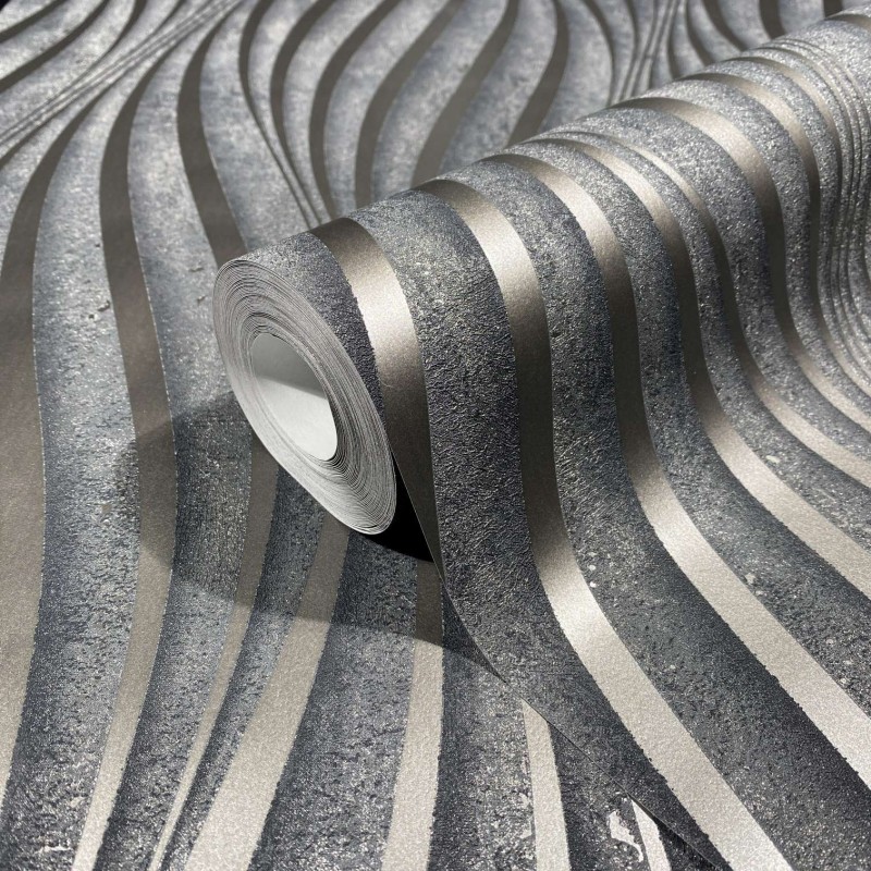 Papel pintado moderno textura hormigón gris y plata, ideal para interiores con estilo. Marburg City Glow 34261.