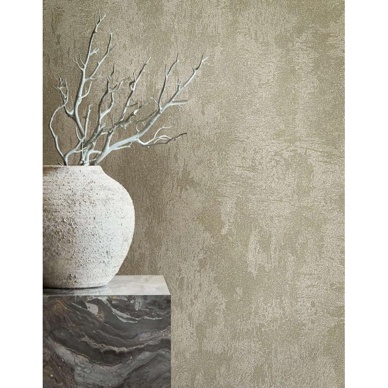 Perfecto para crear atmósferas únicas, papel pintado moderno textura metalizada platino y champan Marburg City Glow 34276.