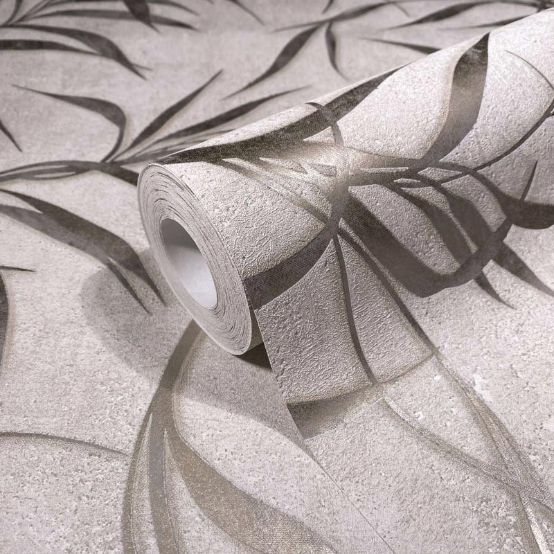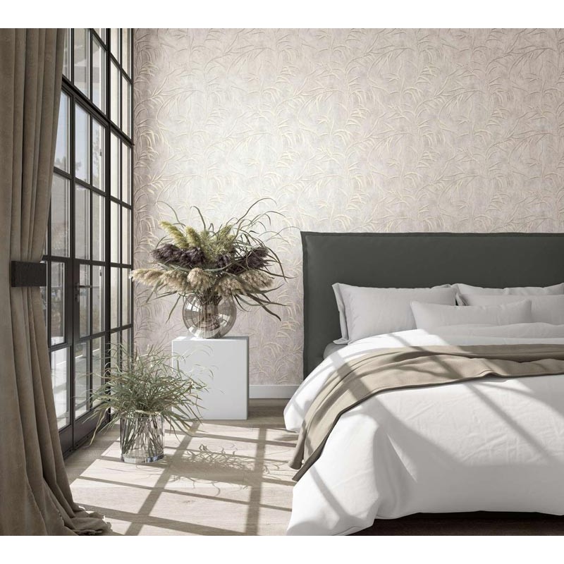 Papel pintado floral moderno greige y bronce metalizado, ideal para destacar tus paredes. Marburg City Glow 34285.