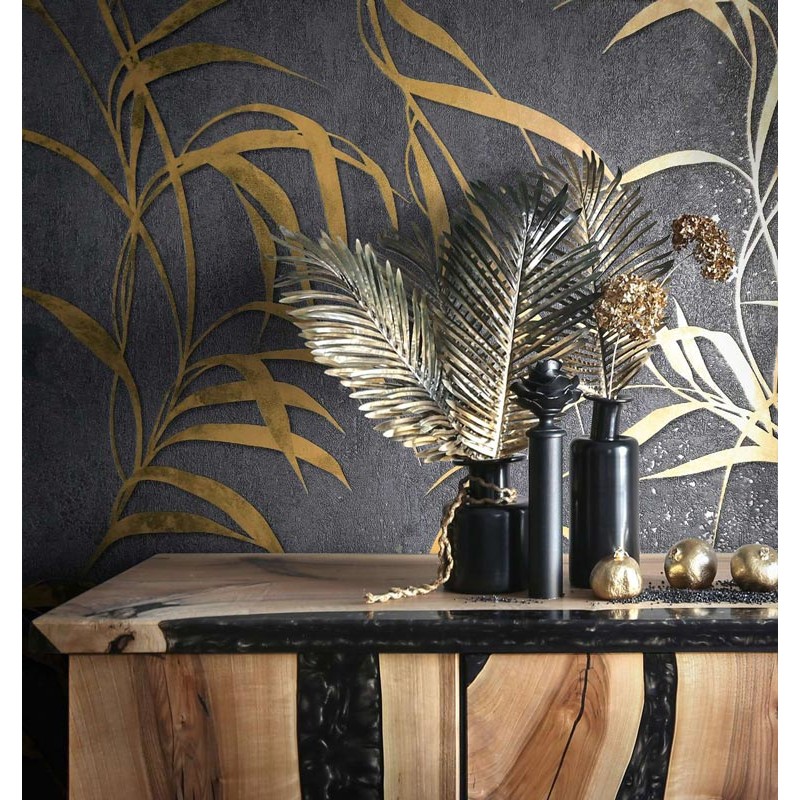 Papel pintado floral moderno marrón y dorado metalizado, una elección con mucha presencia. Marburg City Glow 34288.