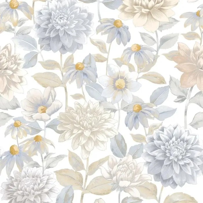 Papel pintado floral flores grandes, dalias multicolor, una elección sofisticada para renovar espacios con inspiración orgánica.