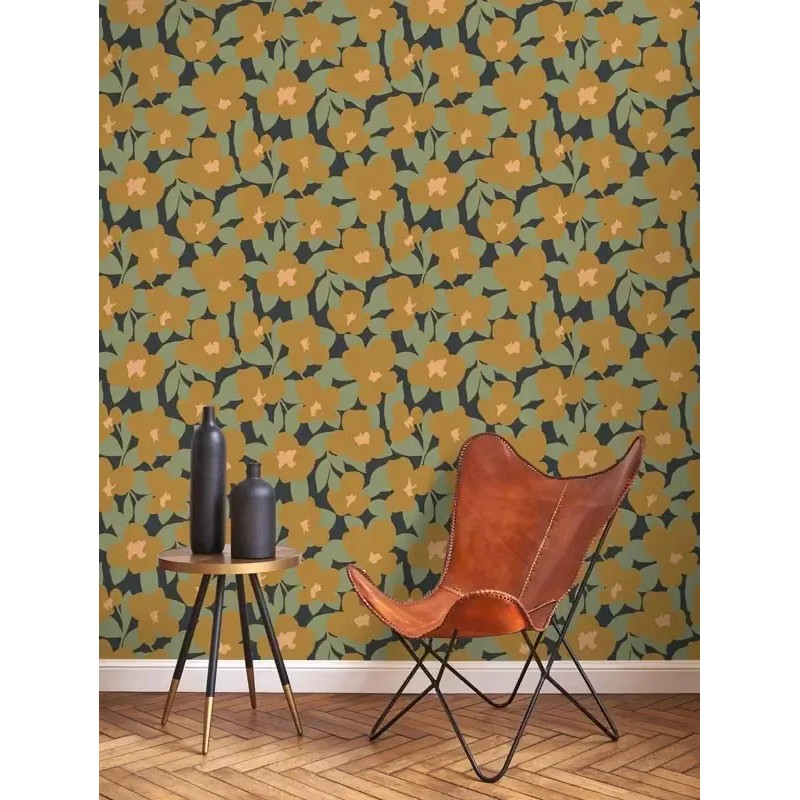 Papel pintado flores estilo vintage con un toque retro, una solución versátil para transformar cualquier estancia con estilo natural.