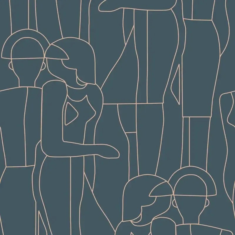 Papel pintado figurativo con personas tonos pastel, estilo vintage, una solución versátil para transformar cualquier estancia con estilo natural.