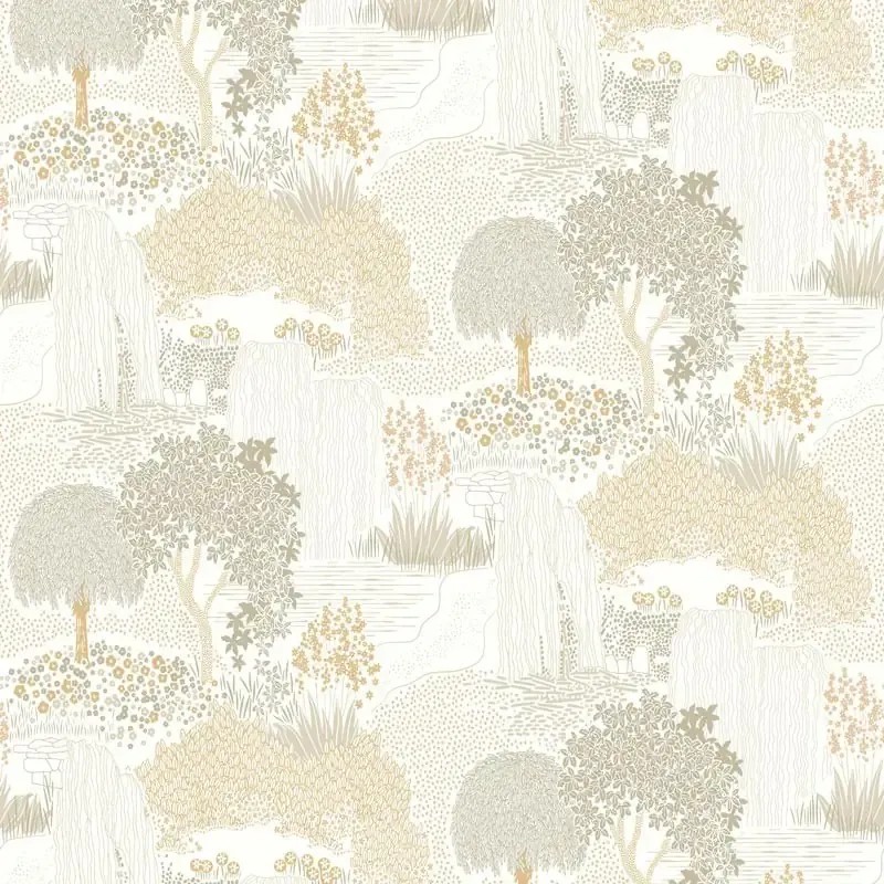 Papel pintado estilo japandi, jardín botánico japonés blanco y negro, en tonos suaves que amplían visualmente el espacio y aportan claridad.