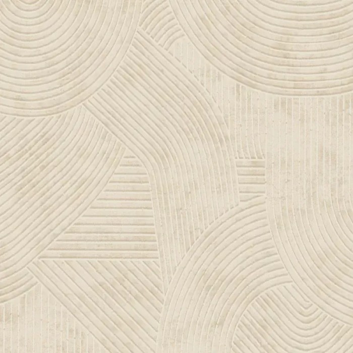 Papel pintado estilo zen con surcos de arena blancos, una base cromática neutra que combina fácilmente con cualquier decoración.