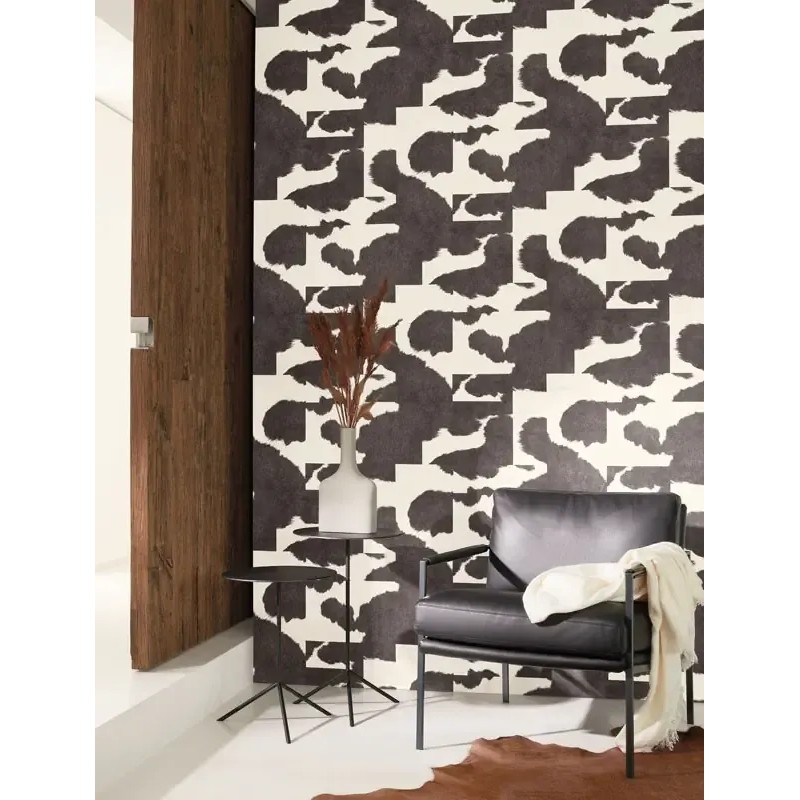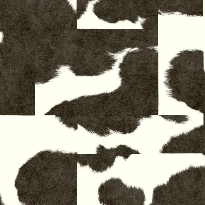 Papel pintado imitación piel de vaca tipo patchwork, perfecto para quienes buscan equilibrio entre estética y confort.
